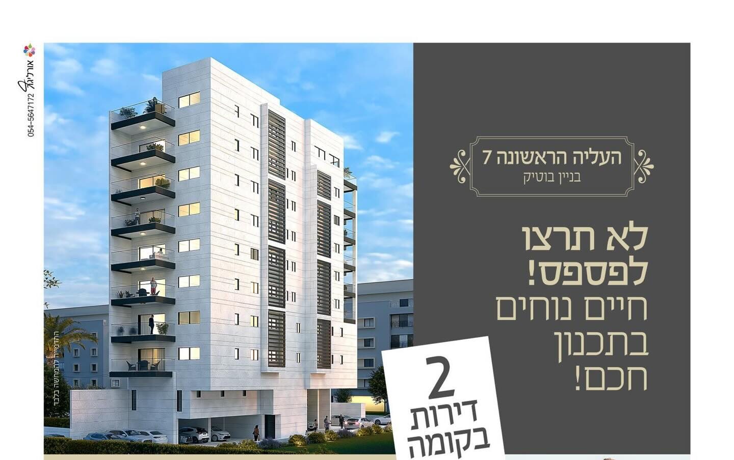 פרויקט העלייה הראשונה 7 מגלם בתוכו את כל המרכיבים הנדרשים ליצירת מוצר נדל״ני איכותי בעל ערך ארוך טווח. השילוב בין תכנון מדויק, מיקום מרכזי והיקף מצומצם של יחידות דיור מייצר הזדמנות נדירה עבור רוכשים המחפשים לא רק נכס, אלא חוויית מגורים שלמה ופוטנציאל כלכלי מבוסס.